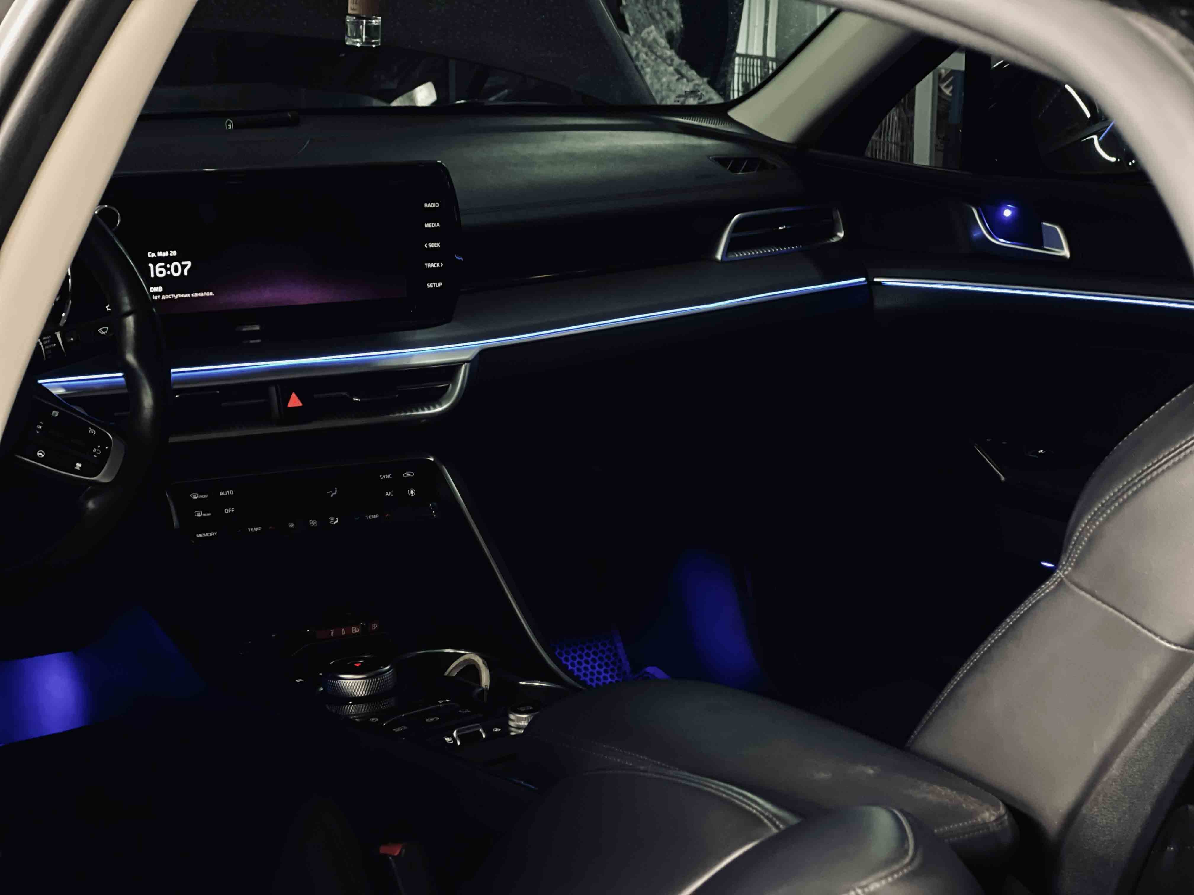 Установка контурной подсветки позволяет улучшить внешний вид салона, добавить мягкий рассеянный свет и усилить ощущение уюта во время поездок в тёмное время суток. Это не только декоративный, но и функциональный элемент — подсветка делает интерьер более удобным и помогает лучше ориентироваться в салоне ночью.